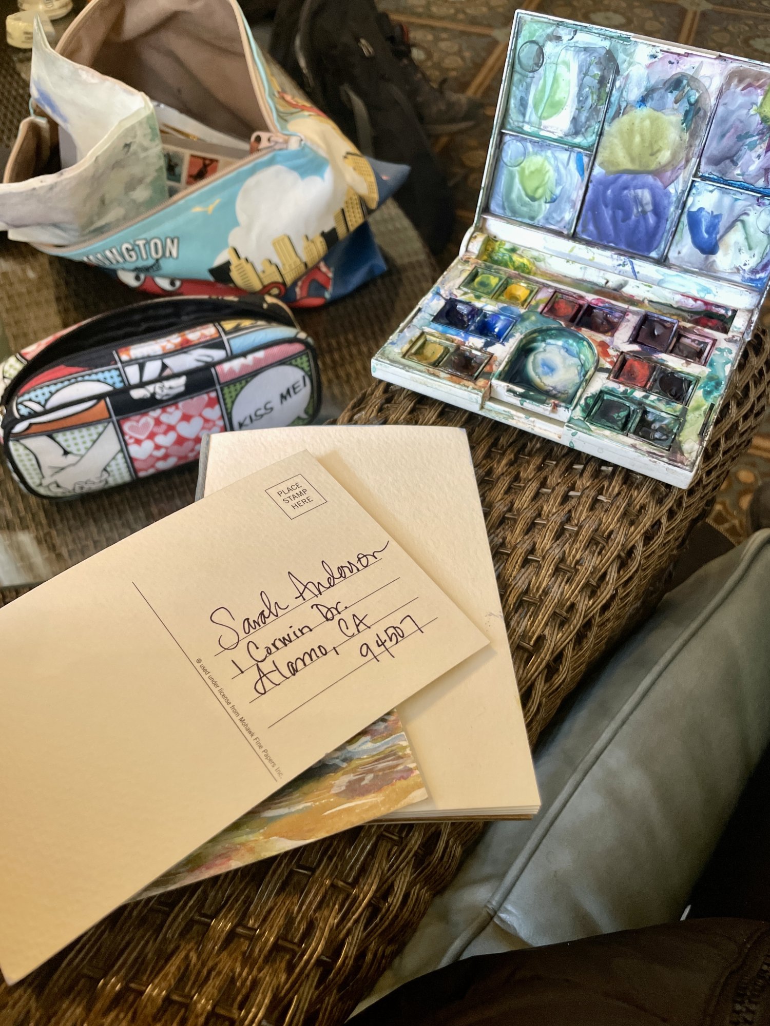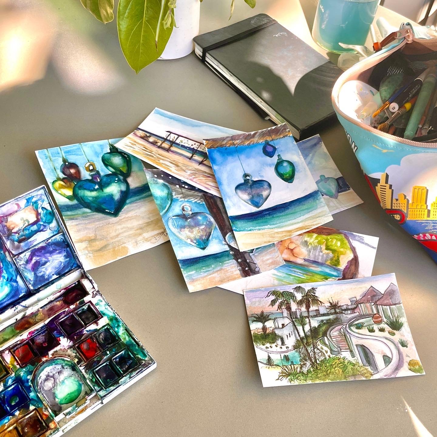 When I trave, I love to send hand-painted postcards to my friends and colleagues.